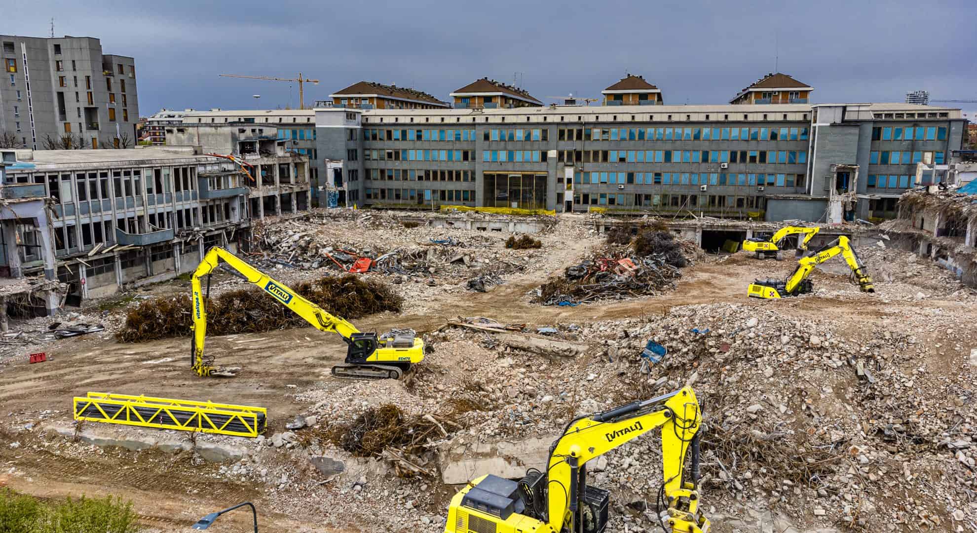 The demolition of the RCS Media Group S.p.A. building in Via Rizzoli, Milan, is a significant example and fits into a broader context of redevelopment of the entire area: one year of work and a total area divided into 6 lots for a total volume of 161,500 cubic meters.